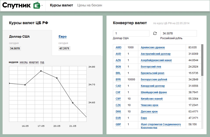 «Спутник» позволяет просматривать телепрограмму и видеоматериалы в онлайне. На портале можно также найти информацию финансового характера и сводки погоды.