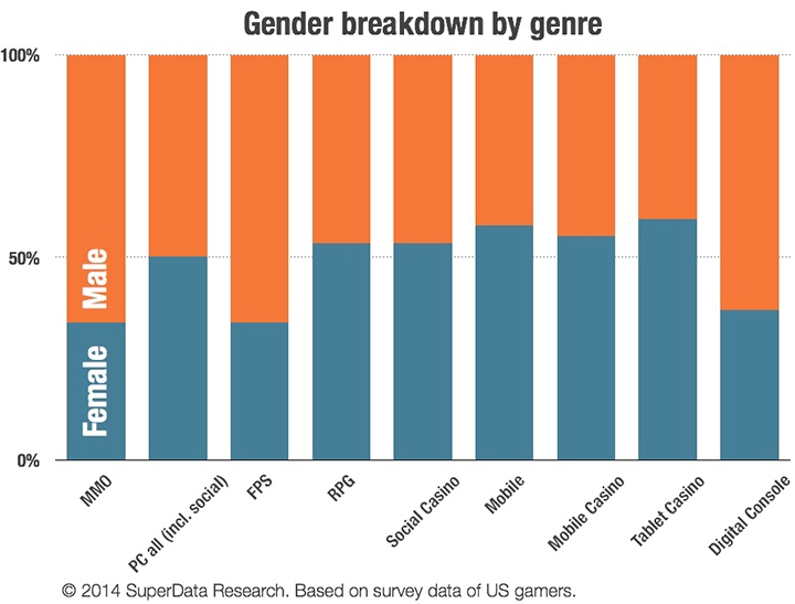 Согласно весеннему отчёту Ассоциации производителей развлекательного ПО (Entertainment Software Association), женщины составляют 48% всей аудитории видеоигр в США. Из недавнего исследования компании AppLovin следует, что геймерши не только больше мужчин играют в мобильные игры, но и чаще совершают покупки по внутриигровым рекламным объявлениям.