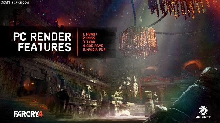 Far Cry 4 будет поддерживать практически все технологии NVIDIA, задействованные в Assassin«s Creed Unity и The Crew. А именно — алгоритм глобального затенения HBAO+ (улучшенный Horizon-Based Ambient Occlusion), делающий тени глубокими, реалистичными и детализированными, режим временно̀го сглаживания TXAA, в котором изображение выглядит более чётким и плавным, и технологию отрисовки теней PCSS (Percentage Closer Soft Shadows), смягчающую тени по мере увеличения расстояния от объекта и обеспечивающую качественную фильтрацию.
