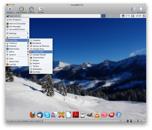 Доступен релиз VirtualBSD 9.0, десктоп-ориентированной сборки FreeBSD 9.0, базирующейся на использовании пользовательского окружения Xfce 4.8 с интегрированной панелью wbar. Дистрибутив оформлен в виде образа виртуальной машины (1.5 Гб), пригодного для запуска в системе виртуализации VMware и VirtualBox.