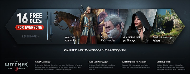 В открытом письме, обращённом к поклонникам, сооснователь компании CD Projekt RED Марцин Ивиньский (Marcin Iwiński) объявил, что для ролевой игры The Witcher 3: Wild Hunt запланировано аж шестнадцать скачиваемых дополнений, и все они будут бесплатными.