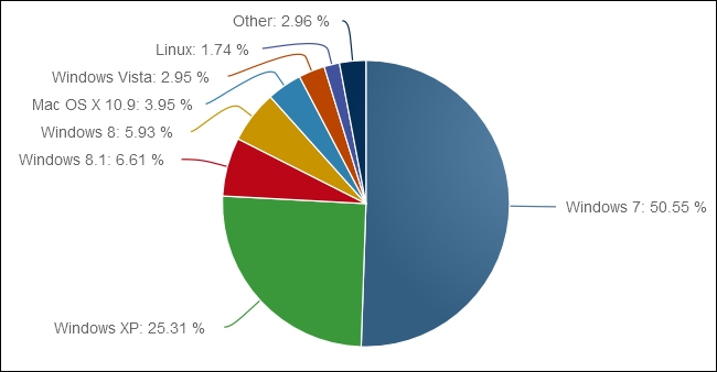 Программные платформы Windows занимают 91,5% отрасли. При этом самой популярной ОС является Windows 7 с 50,6% глобального рынка.