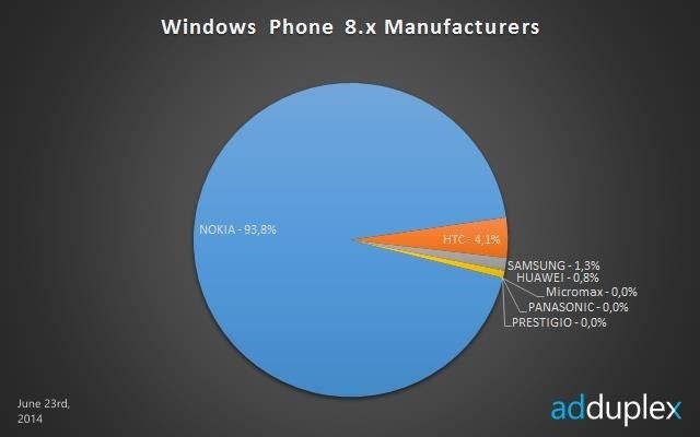Благодаря усилиям сотрудников рекламной сети AdDuplex стала доступной актуальная на сегодняшний день статистика об установленных версиях операционной системы Windows Phone. Так, согласно опубликованным данным, новейшую версию мобильной платформы Windows Phone 8.1 уже используют 7,7% владельцев WP-гаджетов. Такой результат отображает очевидную тенденцию к дальнейшему росту, так как в прошлом месяце аналогичный показатель был на уровне 5,2%.