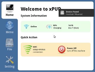 Вышел релиз перспективного мини-дистрибутива xPUD 0.9.2, пользовательский интерфейс которого построен на основе XUL движка Mozilla. Загрузочный образ xPUD занимает 64 Мб и оформлен в виде гибридного ISO, поддерживающего работу как с CD, так и с USB Flash. Время полной загрузки составляет менее 10 секунд. Дистрибутив предельно прост в эксплуатации и пропагандирует идею максимальной интеграции с web-браузером.
