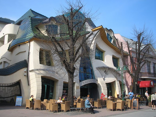 Кривой домик с уникальной архитектурой — это на самом деле обычный торговый центр в маленьком польском городе. Выполнен он в стиле «оптическая иллюзия».