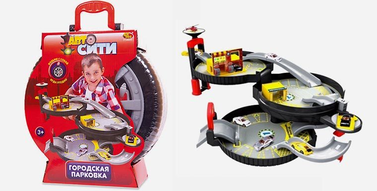 Трехуровневая автомобильная парковка с гаражами, мойкой и заправкой. Весь набор складывается в компактный кейс для переноски.