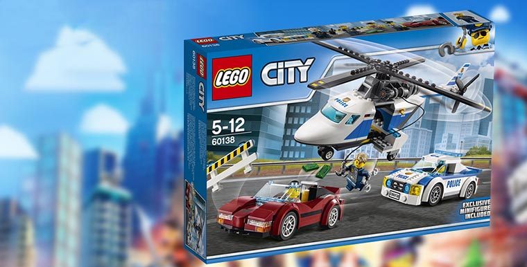Оригинальный конструктор LEGO с полицейским вертолетом, двумя машинами и четырьмя фигурками.