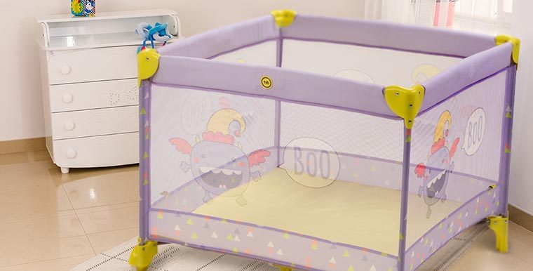 Просторный манеж 84×84 см быстро скрадывается. Мягкое дно, углы с защитой и два колеса для быстрого перемещения.