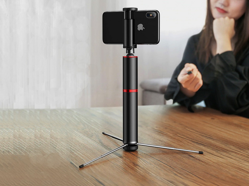 Оригинальный монопод с возможностью работы настольным штативом. Максимальная длина в формате «ручки» — 690 сантиметров, высота на столе — до 810 сантиметров.