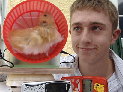 Как известно, многие производители активно разрабатывают новое поколение зарядников и элементов питания, работающих на том или ином виде топлива. Свой, совершенно оригинальный подход предложил 16-летний Петер Эш (Peter Ash) из г. Сомерсета. Как сообщает агентство Ananova, подросток сконструировал зарядное устройство для сотового телефона, работающее на хомячьей тяге. Когда хомяк приступает к своим ежедневным тренировкам на колесе, вырабатываемый им ток заряжает мобильник. «Каждые две минуты, проведенные Элвисом (так зовут хомяка) на колесе дают мне порядка тридцати минут разговоров по телефону», сказал Петер. Идея пришла молодому человеку после того, как его сестра Сара начала жаловаться, что Элвис будит ее по ночам звуком крутящегося колеса. «Я подумал, что если уж колесо крутится, то пусть оно делает так же что-то полезное, и присоединил к нему генерирующий механизм», добавил он.