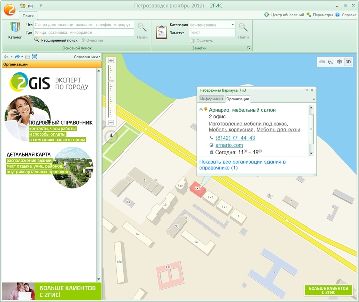 Начиная с ноября, гостям и жителям этих городов стало проще ориентироваться в пространстве. Названия организаций, адреса, сферы деятельности, телефоны, сайты, а также подробная и актуальная 3D карта — все это есть в 2ГИС.