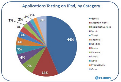 По новым статистическим данным, 44% приложений для iPad, отосланных на сегодняшний день разработчиками в компанию Apple для тестирования, являются играми. Далее в списке следуют развлекательные программы, на которые приходится 14 процентов. Это подтверждает опасения, что многие по-прежнему рассматривают iPad как в первую очередь развлекательное устройство, а не инструмент для работы. Напомним, что на прошлой неделе Apple официально объявила о начале приема приложений от разработчиков, который должен будет закончиться 27 марта. Программистам было предложено создавать игры и приложения для операционной системы iPhone OS 3.2, под управлением которой будет работать iPad. По мнению аналитиков, запуск в продажу планшетного компьютера iPad стало настоящей «золотой лихорадкой» для разработчиков, поскольку не все приложения из App Store будут работать на большом экране нового устройства, и их придется адаптировать или разрабатывать новые. Для этого в помощь разработчикам был предоставлен тулкит iPhone 3.2 beta для создания ПО специально для iPad. Сам же iPad должен будет поступить в продажу 3 апреля.