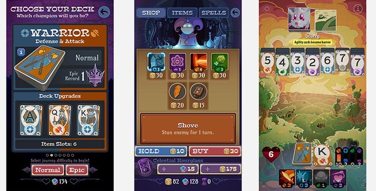 За основу геймплея взят классический солитер. Нужно раскладывать колоду по достоинству карт, при этом каждая из четырех мастей пополняет очки способностей.