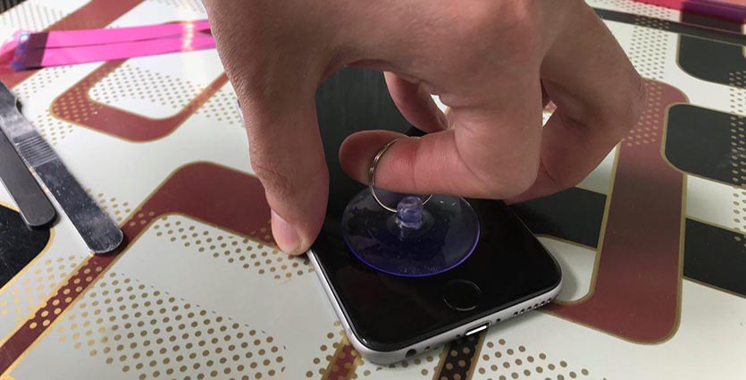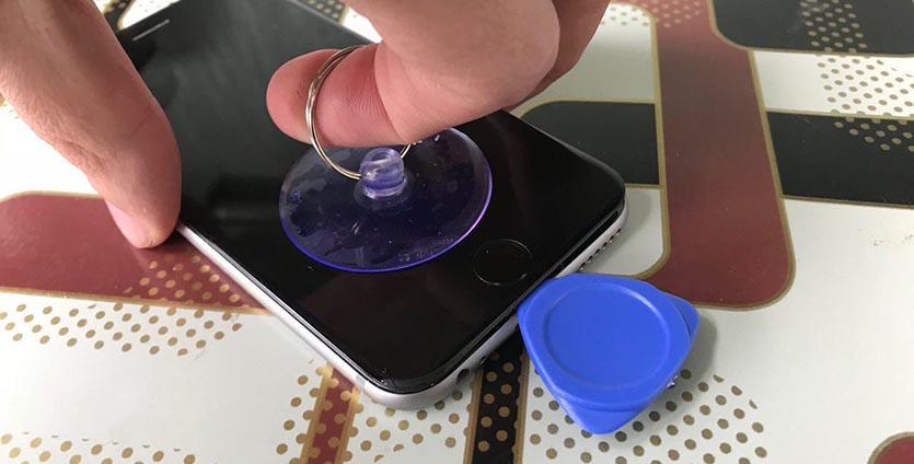 Совет: крепите присоску ближе к кнопке Домой, именно с нижнего торца и нужно производить отсоединение модуля. Старайтесь не делать резких движений, в верхней части экран соединен тонким шлейфом с остальной начинкой.