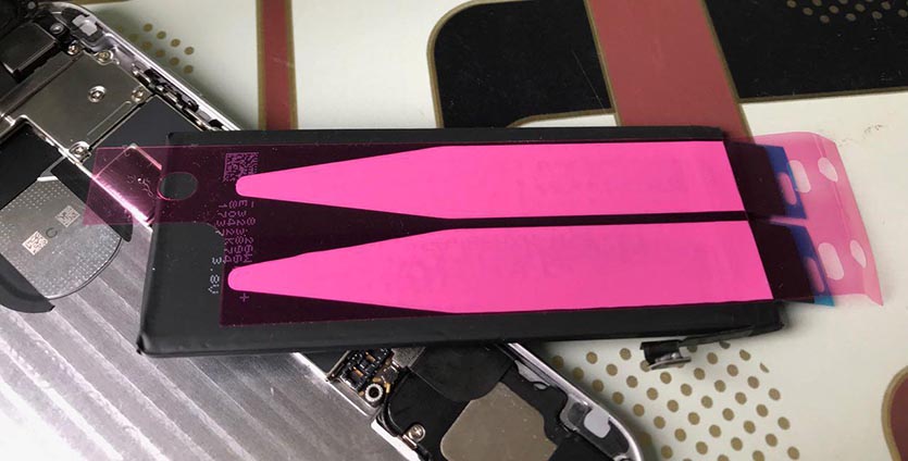 13. Наклеиваем новые полоски скотча на новый аккумулятор.