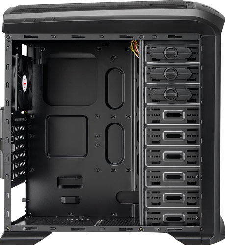 В корпусах можно установить до десяти вентиляторов. Templarius Telum поставляется в двумя 120-миллиметровыми вентиляторами, Templarius Ferrum - с одним. Расположение блока питания - нижнее. Большое количество отверстий в шасси способствует аккуратной укладке кабелей. Есть отверстия и для шлангов СВО.
