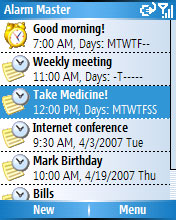 Разработчик программного обеспечения Connective Tools выпустил обновление для программы Alarm Master. В соответствии с названием, это мастер будильников, предназначенный для голее гибкого управления будильниками на Windows Mobile смартфонах. С использованием этой программки, пользователь может назначать неограниченное количество будильников, в том числе возможно и несколько напоминаний назначенных на одно и то же время. Есть возможность просмотра, изменения, удаления и создания будильника быстро и просто. Поддерживаются гибкие настройки будильников по нескольким параметрам. В качестве мелодии сигнала можно использовать многие форматы, в том числе MP3, WAV и MID. В обновлённой версии Alarm Master 1.2 появилась возможность продвинутых настроек времени. Будильник, срабатывающий один раз или повторяющийся, может быть назначен на определённую дату, день недели, месяца или даже года, или же на ближайшие 24 часа. Кроме того, был переработан движок времени и внедрены небольшие изменения в интерфейс. Программа предназначается для смартфонов, работающих под управлением операционной системы Windows Mobile 5.0. Как обычно, в ближайшее время, демо-версию Alarm Master 1.2 можно будет найти в разделе "Программы для КПК" на HPC.ru.
