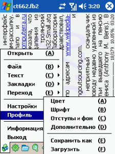 Вышло обновление известной программы для чтения на мобильных устройствах Windows Mobile - AlReader. Программа поддерживает обширные возможности по настройке текста, поддержку довольно обширного набора форматов, возможность работы со словарями Dict, Lingvo и Slovoed и многое другое. В новой версии AlReader 2.3.70911 разработчиком заявлены такие изменения: - добавлено несколько действий на кнопки и тапы - доделана Волна 2 (только в портрете) - вывод текста в 2 колонки - доделана работа с фоном. Подразумевается три типа фоновых картинок - файлы текстур произвольного размера и с произвольным именем файла - файлы, имеющие имя *.m1.bmp и размеры 3x на 3x - считаются скинами из 9 зон, автоматом растягиваются на весь экран. (для одноколоночного вывода текста) - файлы, имеющие имя *.m2.bmp и размеры 5x на 3x - считаются скинами из 15 зон, автоматом растягиваются на весь экран. (для двухколоночного вывода текста) - переделан механизм выделения слов. - теперь в словарь можно отправлять несколько слов Программа поддерживает КПК, смартфоны и коммуникаторы на базе Pocket PC 2002, MS Smartphone 2002, Windows Mobile 2003 и выше. Как и прежде, она распространяется бесплатно. В ближайшее время, версию AlReader 2.3.70911 можно будет найти в разделе "Программы для КПК" на HPC.ru.