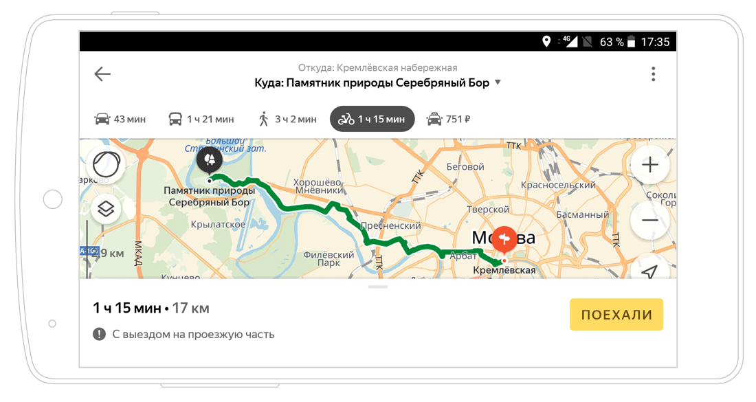 Веломаршруты можно строить в веб-версии Карт и в мобильном приложении для Android. У пользователей iOS такая возможность появится в ближайшее время.