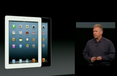 В рамках вчерашней презентации компания Apple представила четвертое поколение планшета iPad. Гаджет с дисплеем Retina базируется на высокопроизводительном процессоре с четырьмя графическими ядрами A6X. Производительность графической системы устройства выросла вдвое, причем время работы батареи осталось прежним и составляет 10 часов. Внешне новый iPad не отличается от своего предшественника, однако в нем задействован сотовый модуль, который обеспечил совместимость с более широким перечнем сетей LTE, чем текущий вариант.В новом iPad также имеется разъем Lightning, который уже знаком нам по iPhone 5 и пятому поколению iPod touch. Еще одной особенностью планшета является более быстрый Wi-Fi. Младшая модель iPad с 16 гигабайтами памяти будет стоить в США 499 долларов. Тот же аппарат, но с поддержкой сотовых сетей, обойдется покупателям в 629 долларов.