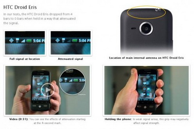 На странице официального сайта Apple, посвященной антенна iPhone 4, больше нет видеороликов, на которых описывается, как пропадает сигнал связи у конкурирующих моделей в случае, если их держать неправильно. Ранее на странице по адресу apple.com/antenna было подробно описано, что другие модели смартфонов имеют такую же особенность конструкции, как и iPhone четвертого поколения, в связи с которой могут терять сигнал, если брать их за определенные части корпуса. В число этих смартфонов вошли такие модели как BlackBerry Bold 9700, HTC Droid Eris, Samsung Omnia II и Nokia N97. Последним к этому списку присоединился новейший смартфон Motorola Droid X. На данный момент на вышеуказанной странице сайта Apple присутствует лишь одно видео, на котором зрителю предлагается взглянуть изнутри на лаборатории, где компания проводит испытания своих антенн. Apple сообщает, что инвестировала более 100 миллионов долларов в создание 17 современных звукопоглощающих камер, в которых возможно проводить испытания качества связи у производимых компанией антенн.