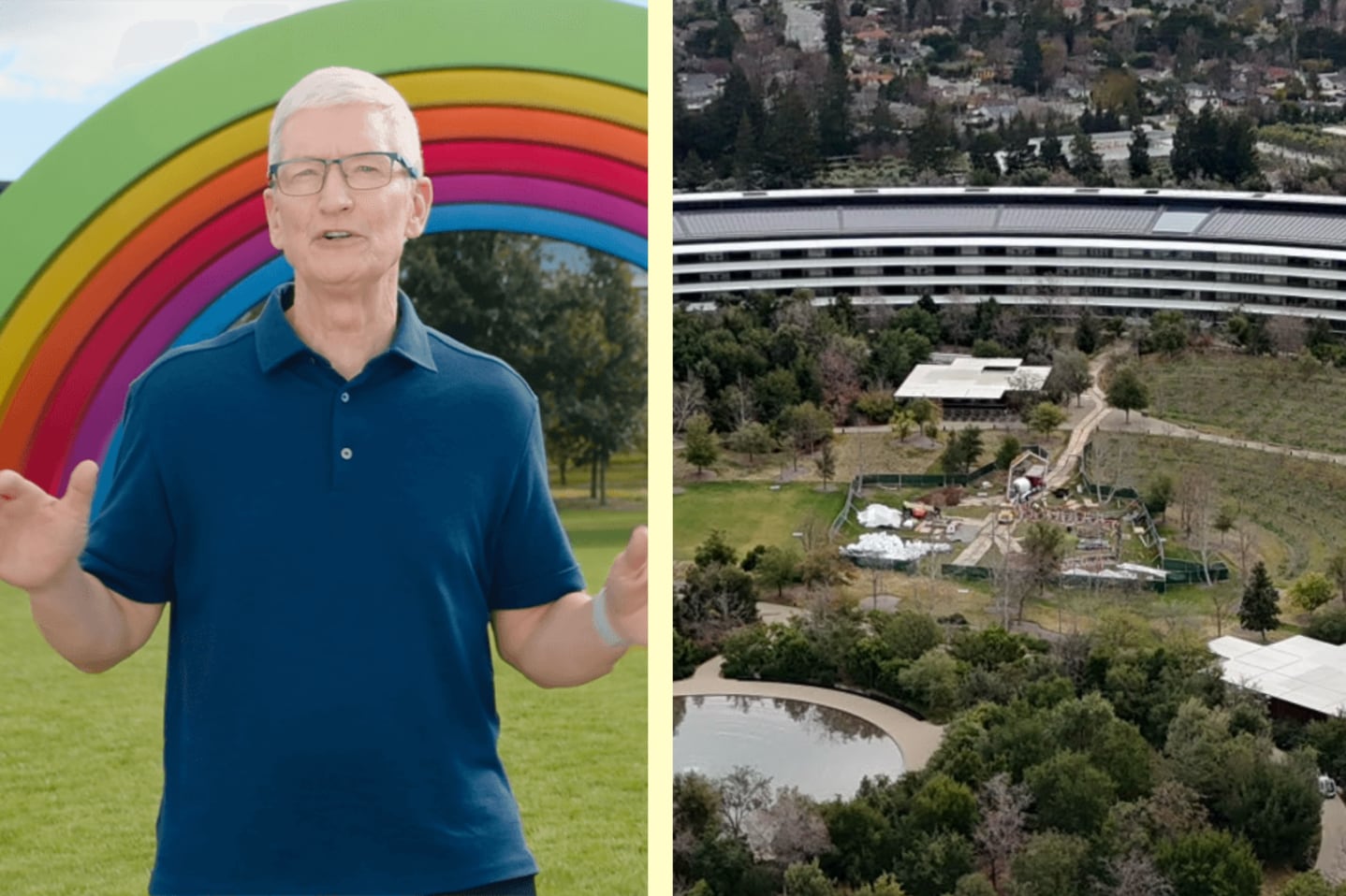 Apple убрала из Apple Park большую цветную радугу, на фоне которой во время презентаций часто выступал глава компании Тим Кук.