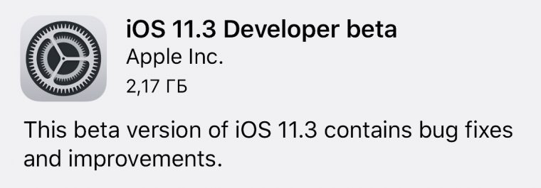 Обновление занимает 2 ГБ на накопителе. Скачать iOS 11.3 beta 1 можно «по воздуху». Главное, чтобы был установлен профиль разработчика. Финальная версия прошивки выйдет весной.