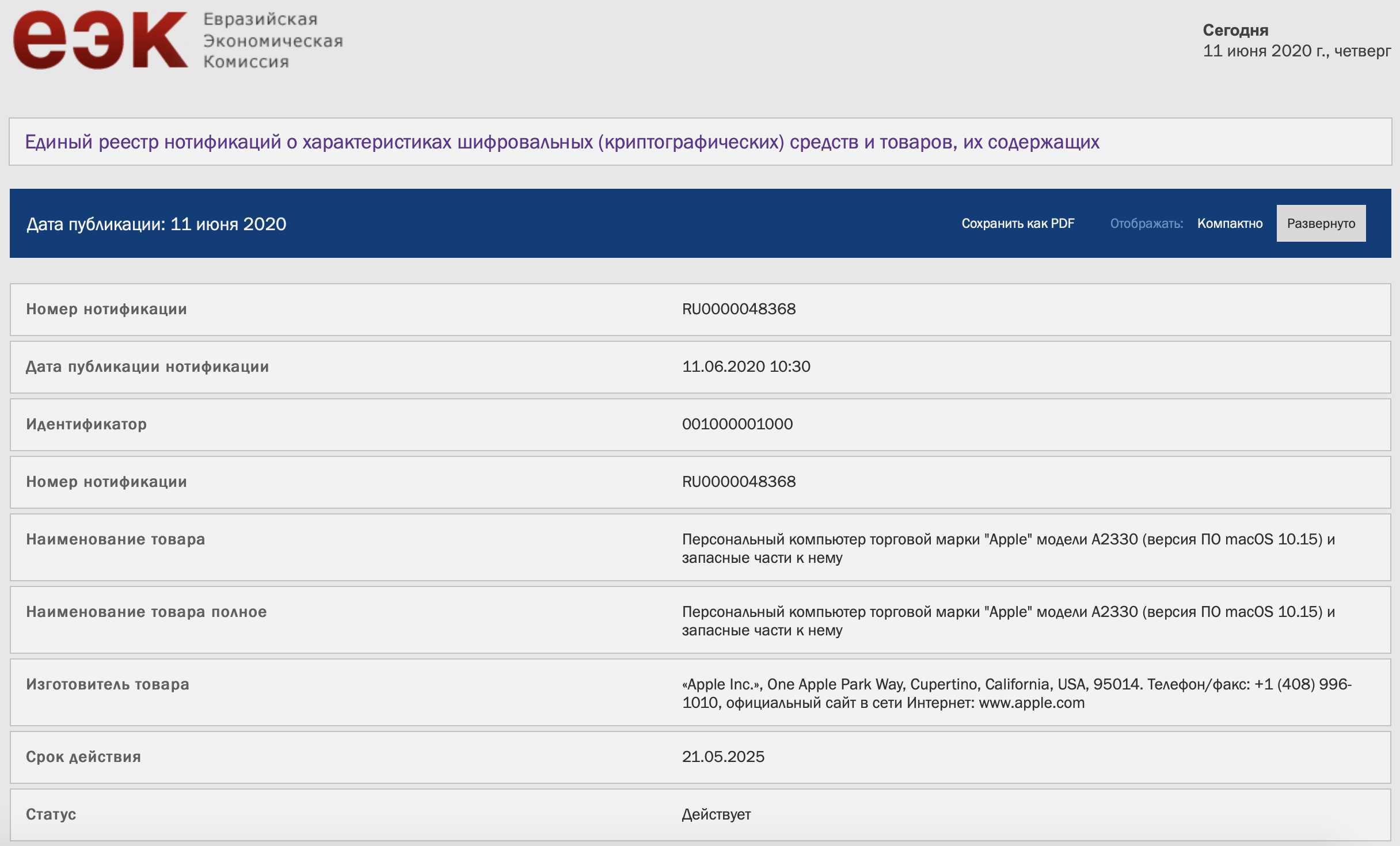 В базе Евразийской экономический комиссии засветились новые модели iPhone и Mac.