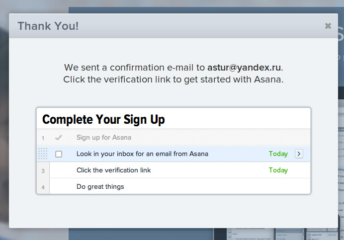 Советы при регистрации в стиле Asana
