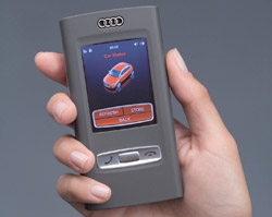 Компания Audi, известная своими автомобилями, по всей видимости, решила создать устройство, совмещающее в себе мобильный телефон и средство контроля автомобильных систем. В мировой сети даже появились фотографии концепта. По задумке создателей, это многофункциональное устройство будет поддерживать сети GSM/UMTS. Управление, будет осуществятся с помощью сенсорного дисплея, для этого разработан специальный интерфейс. В аппарат встроен блок управления автомобильной сигнализацией с автозапуском, Wi-Fi-адаптер и GPS-навигатор. Больше никаких подробностей о новинке неизвестно. В случае серийного выпуска такого аппарата, владельцы новых автомобилей Audi обзаведутся очень интересным и эксклюзивным аксессуаром.