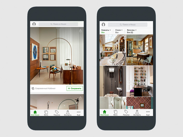 С помощью мобильного приложения можно получить доступ к огромной библиотеке из фотографий с идеями для дома и офиса, а также делиться ими с близкими людьми.