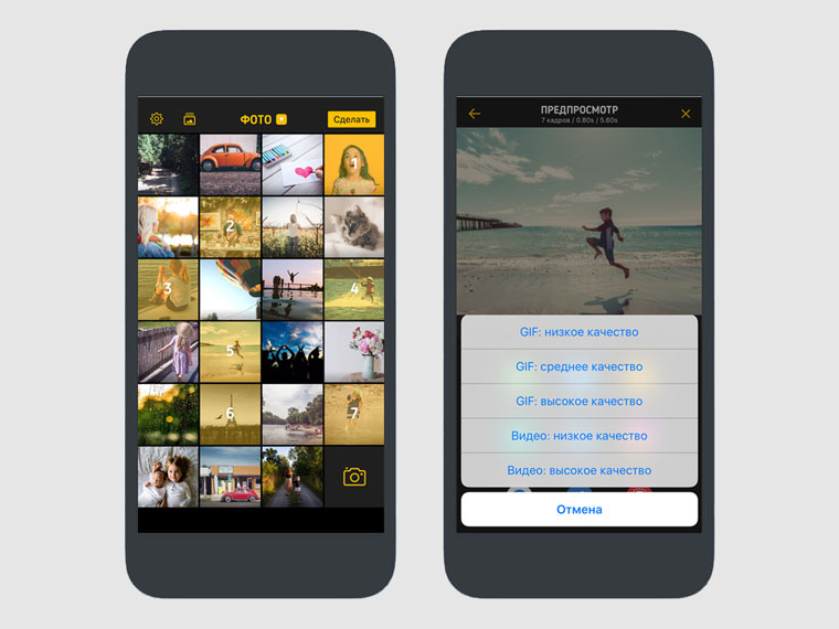 Разработчики этого мобильного приложения предлагают превратить видеозаписи, фотографии и живые снимки в смешные GIF-анимации и потешные видео.