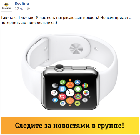 Буквально несколько часов назад оператор Билайн опубликовал в своих официальных группах в Facebook и ВКонтакте пост с изображением Apple Watch и интригующим заголовком: