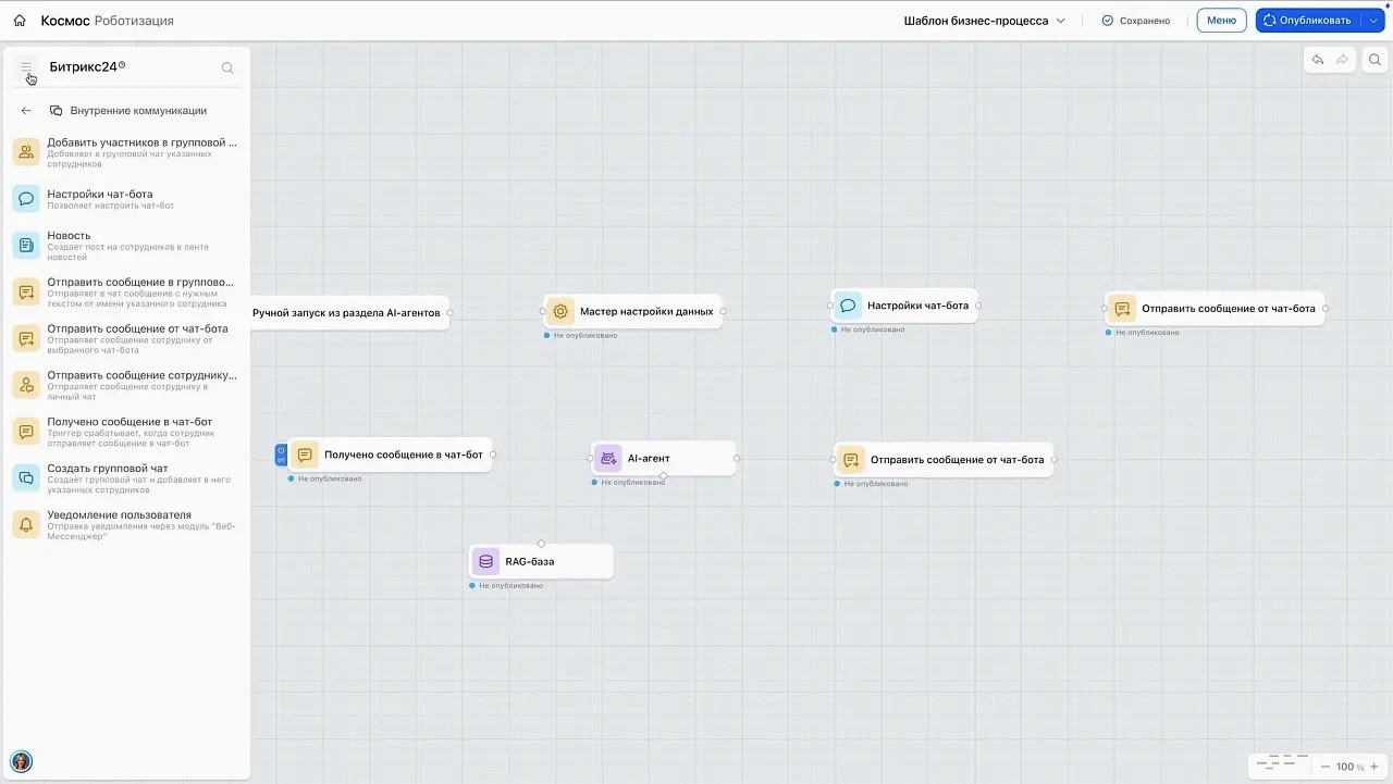 В Битрикс24 появился AI-агент, который может выполнять задачи в сервисе. Достаточно написать сообщение в чате — и агент: