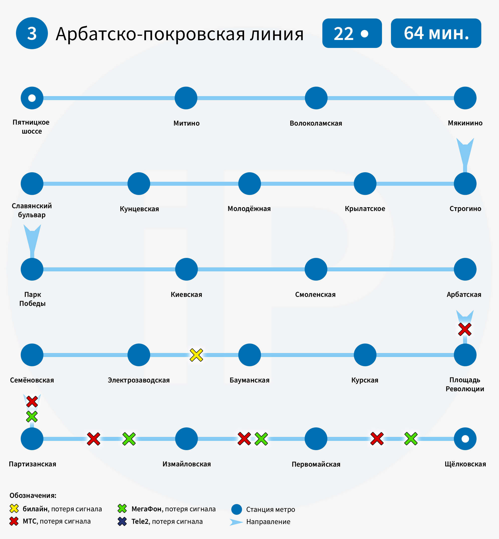 Да. Мы проехали все 15 линий метро (по факту 16!) и все 275 станций. Проверили сигнал МТС, МегаФона, билайна и Tele2. Одновременно! И теперь можем уверенно сказать, какой оператор ловит в метро лучше всех. Покажем, кто из них не ловит в перегонах — и даже отметим, в каких именно.