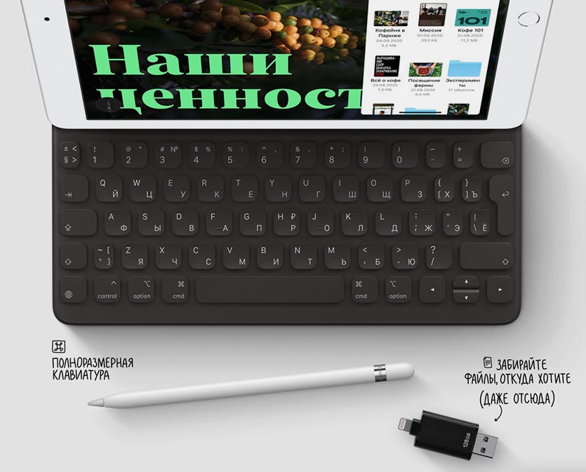 Оба планшета работают с одним и тем же набором аксессуаров. Есть поддержка Apple Pencil 1‑го поколения и клавиатуры Smart Keyboard.