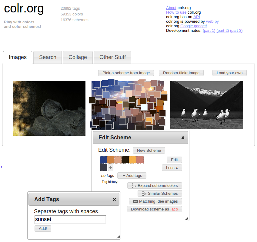 Сайт Colr.org полезен тогда, когда нужно подобрать удачную цветовую схему для сайта, логотипа, постера или чего-нибудь ещё, хоть для картины в стиле импрессионизма. Для профессионала это не проблема: крутой живописец не глядя смешает краски, мастер фотошопа по памяти введёт значения RGB или HSV, опытный полиграфист вслепую выберет полоски из веера образцов. Ну, а как быть простому смертному, который хочет сделать персональный сайт в цветах последней картины Дали? Или, например, нарисовать плакат для своего курорта в цветах сейшельского рассвета?