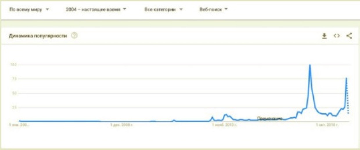 А тем временем, согласно данным Google Трендов, интерес к теме Bitcoin в мире только растёт. В сентябре относительное количество запросов пользователей было близко к значениям декабря 2017 года (период максимальной стоимости за всю историю).