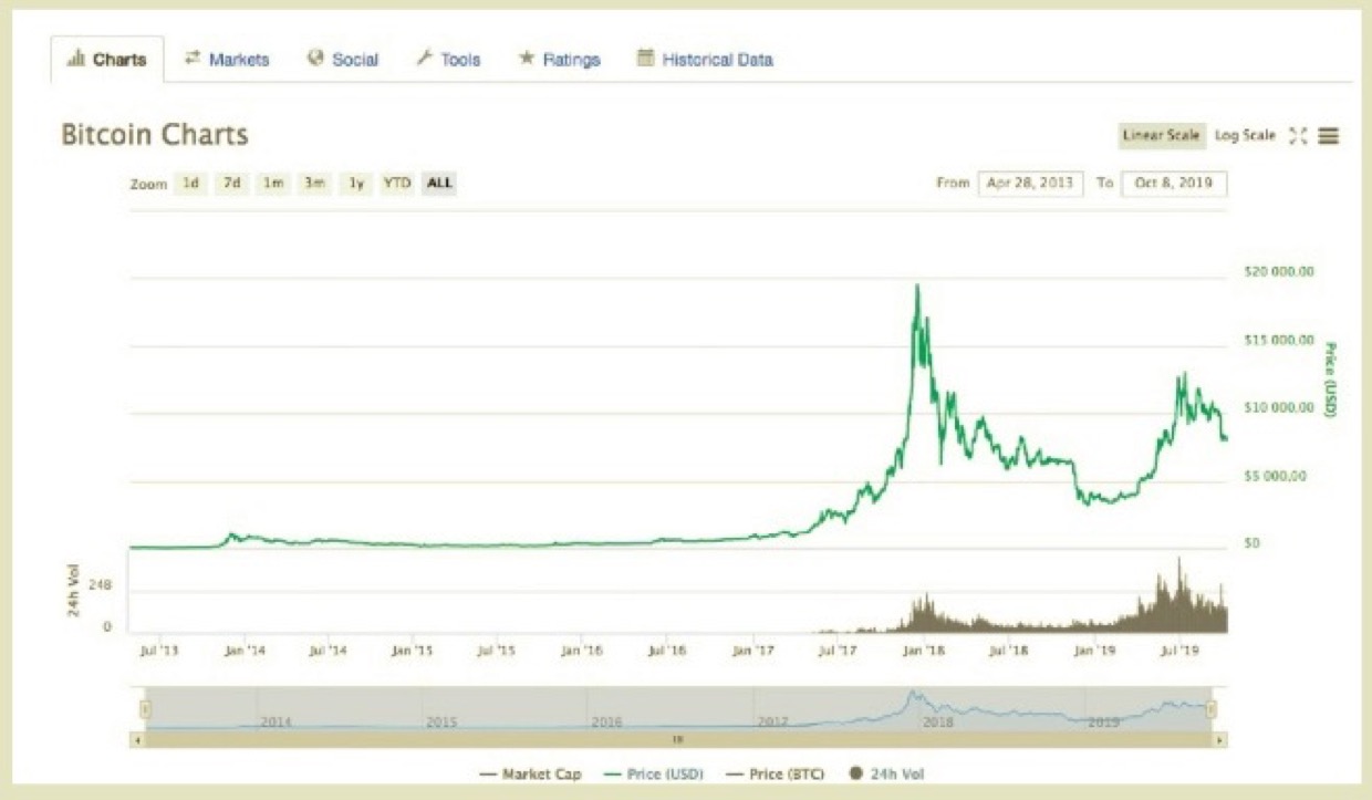 9 октября 2019 года рыночная капитализация 2961 вышедшей на биржу криптовалюты составила 228 миллиардов 861 миллион 987 тысяч 233 доллара (почти 15 триллионов рублей). Это около 0.25% от годового мирового ВВП ($87 265 226 000 000 в 2019 году по данным Международного валютного фонда).