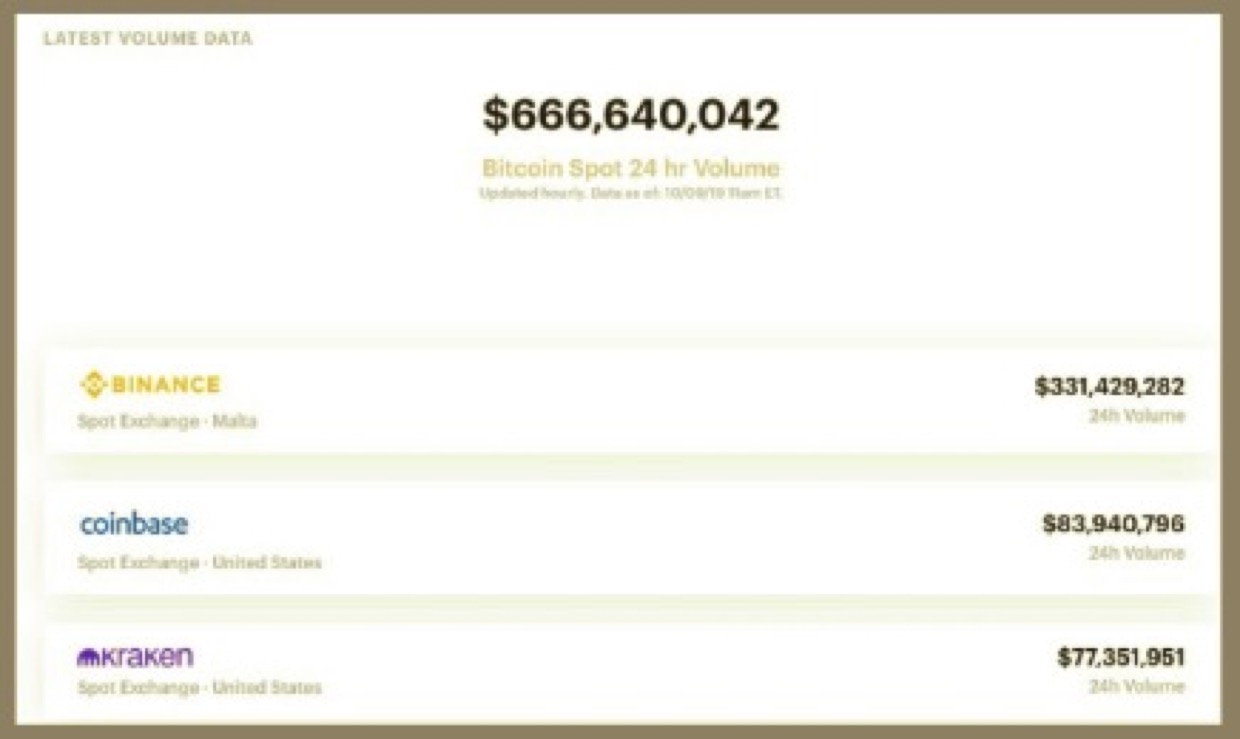 Например, сегодня, по данным coinmarketcap.com, суточный объем торгов Bitcoin — $16 172 464 293 (около триллиона рублей). А по данным сайта bitcointradevolume.com (созданного Bitwise для мониторинга реальной ситуации на рынке) — всего лишь 666 миллионов 640 тысяч 022 доллара (около 43 миллиардов рублей).