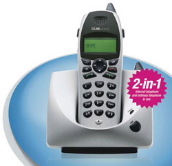 С сегодняшнего дня в США начались продажи DUALPhone – первого радиотелефона с полной поддержкой сервиса IP-телефонии Skype. Вы просто подключаете базовую станцию к обычному телефонному проводу, а также через USB к компьютеру и получаете комбайн, который позволяет общаться внутри города привычным способом, а вот для международных звонков или для общения с другими пользователями системы использовать на порядок более дешевый Skype. На небольшом дисплее устройства при этом отображается содержимое вашего контактного листа, и если кто-то из ваших знакомых находится онлайне с ним можно поговорить просто сняв трубку. В Европе новинка продается уже довольно давно по цене 134 евро. Но вот в Америке до сих пор она была недоступна.
