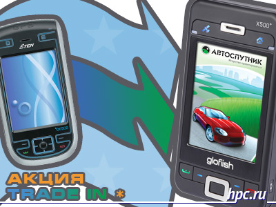 Компания МакЦентр объявляет о начале новой акции. Владельцы коммуникатора E-Ten G500+ могут обменять его с доплатой на современную модель Glofiish X500+ в комплекте с навигационной программой АВТОСПУТНИК. Доплата составит 10200 руб. при базовой цене на X500+ 18490 руб. Таким образом, при сдаче G500+ пользователь получает скидку 8290 руб. Примечание: G500+ должен быть в рабочем состоянии. Осуществить обмен можно в главном офисе продаж компании МакЦентр по адресу: ул. Николоямская, 14.