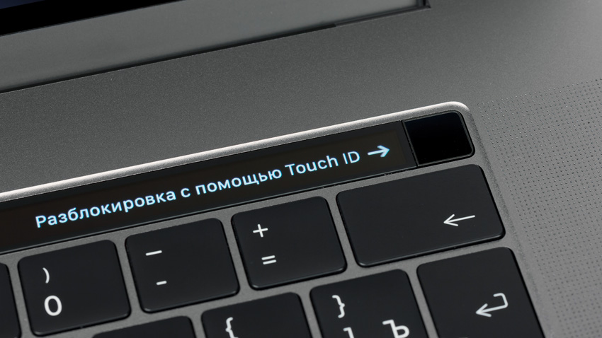 Но важнее другое — процесс разблокировки. Одной из частей Touch Bar стал сканер отпечатков пальцев Touch ID. Достаточно прислонить палец к сенсору, и ноутбук тут же разблокируется.