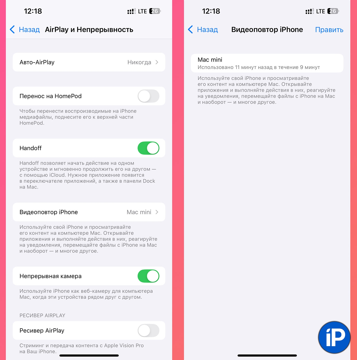 ◈ Настройки — AirPlay и Непрерывность — Видеоповтор iPhone тут можно отключить компьютеры, с которых фишка будет недоступна. Пригодится, если в Apple ID привязано несколько компьютеров, например, детский Мак.