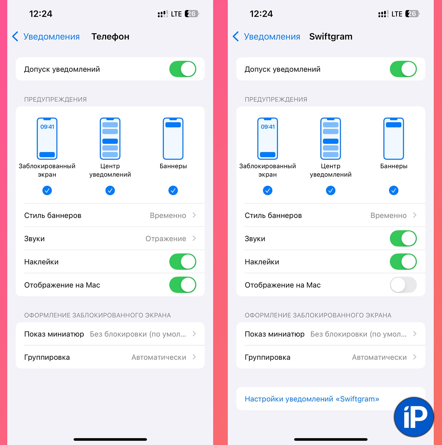 ◈ Настройки — Уведомления здесь открываем параметры нужных приложений и настраиваем тумблер Отображение на Mac. Например, клиент Telegram на Мак есть и дублировать уведомления с айфона не нужно, а приложение банка или другая утилита, которой на компьютере нет — может присылать на него свои уведомления.