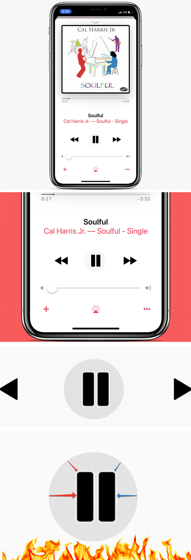 Имеем iOS 11.1.2, iPhone X, встроенное приложение «Музыка» от Apple. Официальный музыкальный плеер. Нажимаем Play и внимательно вглядываемся в кнопку.