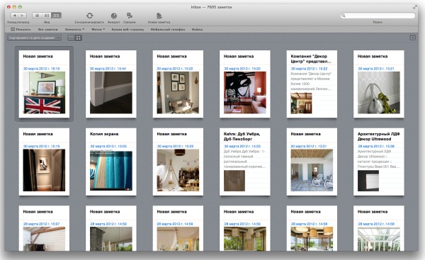 Новый режим просмотра аналогичен тому, что применялся в Evernote для Mac при работе в полноэкранном режиме. Новый просмотр позволяет получить больше информации о содержимом заметки при беглом просмотре. В верхней части списка заметок появилось несколько полезных функций, включая варианты сортировки заметок, выбор размера карточек и возможность скрыть область представления одной заметки.