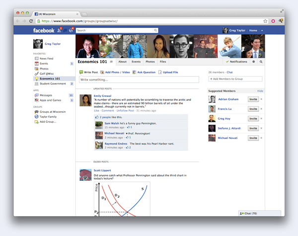Одной из наиболее любопытных составляющих функциональности Groups for Schools следует признать возможность для пользователей обмениваться небольшими файлами размером до 25 МБ, к примеру, записями лекций, графиками проведения спортивных мероприятий и фотографиями (ожидается, что передаваемый контент будет отслеживаться на предмет пиратства). Кроме того, вступившие в ту или иную группу пользователи имеют возможность пригласить своих однокурсников и преподавателей.