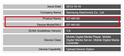 Мы помним, что линейка Note от компании Samsung совсем недавно пополнилась двумя устройствами - новым 5,5-дюймовым смартфоном Galaxy Note II, а также 10,1-дюймовым планшетом Galaxy Note 10. Последние слухи говорят о том, что компания работает над еще одним планшетником Note, который на сей раз получит дисплей размером от 4 до 9 дюймов. Блогеры обнаружили в сети информацию о новом устройстве Samsung Galaxy Note c модельным номером GT-N5100. В настоящий момент аппарат проходи DLNA-сертификацию. Источник сообщает, что устройство получит HD-дисплей и будет работать на базе процессора слегка разогнанного Samsung EXYNOS 4412 с частотой 1,6 ГГц. К слову, тот же самый процессор используется в смартфоне-флагмане Samsung Galaxy S III.