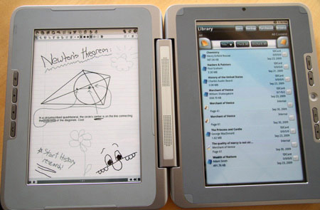 В руки представителей ресурса Gearlog попал прототип анонсированной месяц назад многофункциональной электронной книги enTourage eDGe. Напомним, что устройство выполнено в виде книги с двумя экранами (сенсорной LCD панелью и дисплеем на основе E-Ink). Аппарат совмещает в себе функции нетбука, ридера и мультимедийного плеера. Подробностей Gearlog не сообщил, но отметил, что, пока еще не все функции enTourage eDGe работают должным образом. Хотя уже сейчас ридер доступен для предварительного заказа, в продаже он появится только в феврале следующего года. Так что, у разработчика пока еще есть время для доработки устройства.